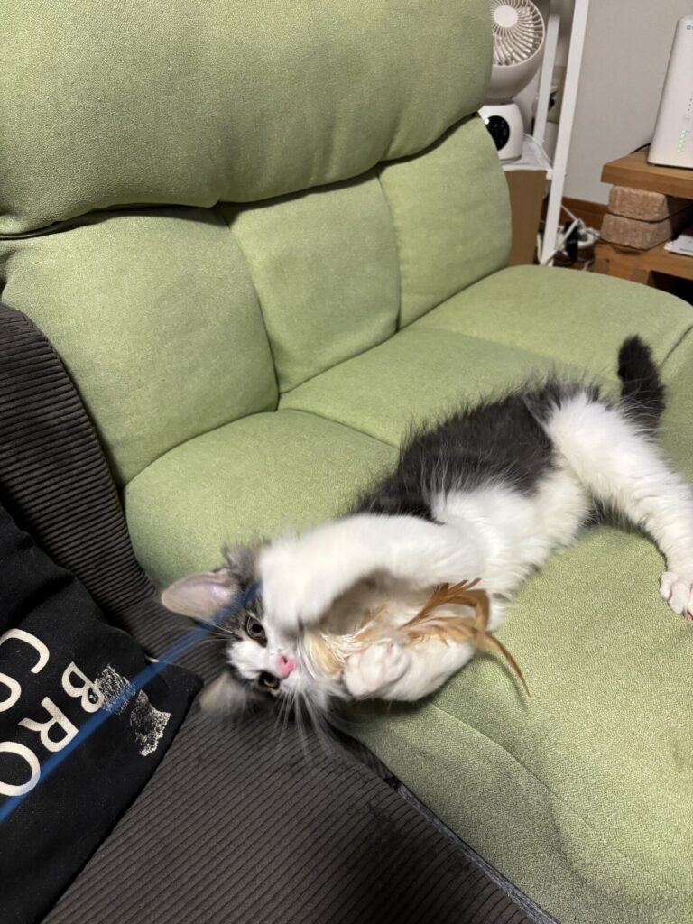 おもちゃでじゃれて遊んでみたり、あんなに小さな可愛い顔もだんだん男前になってきて、毛も伸び始めてきました。